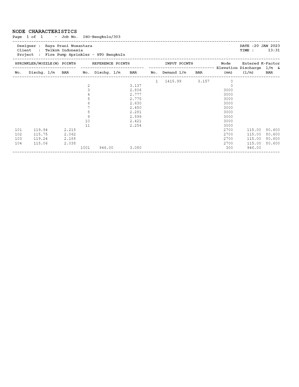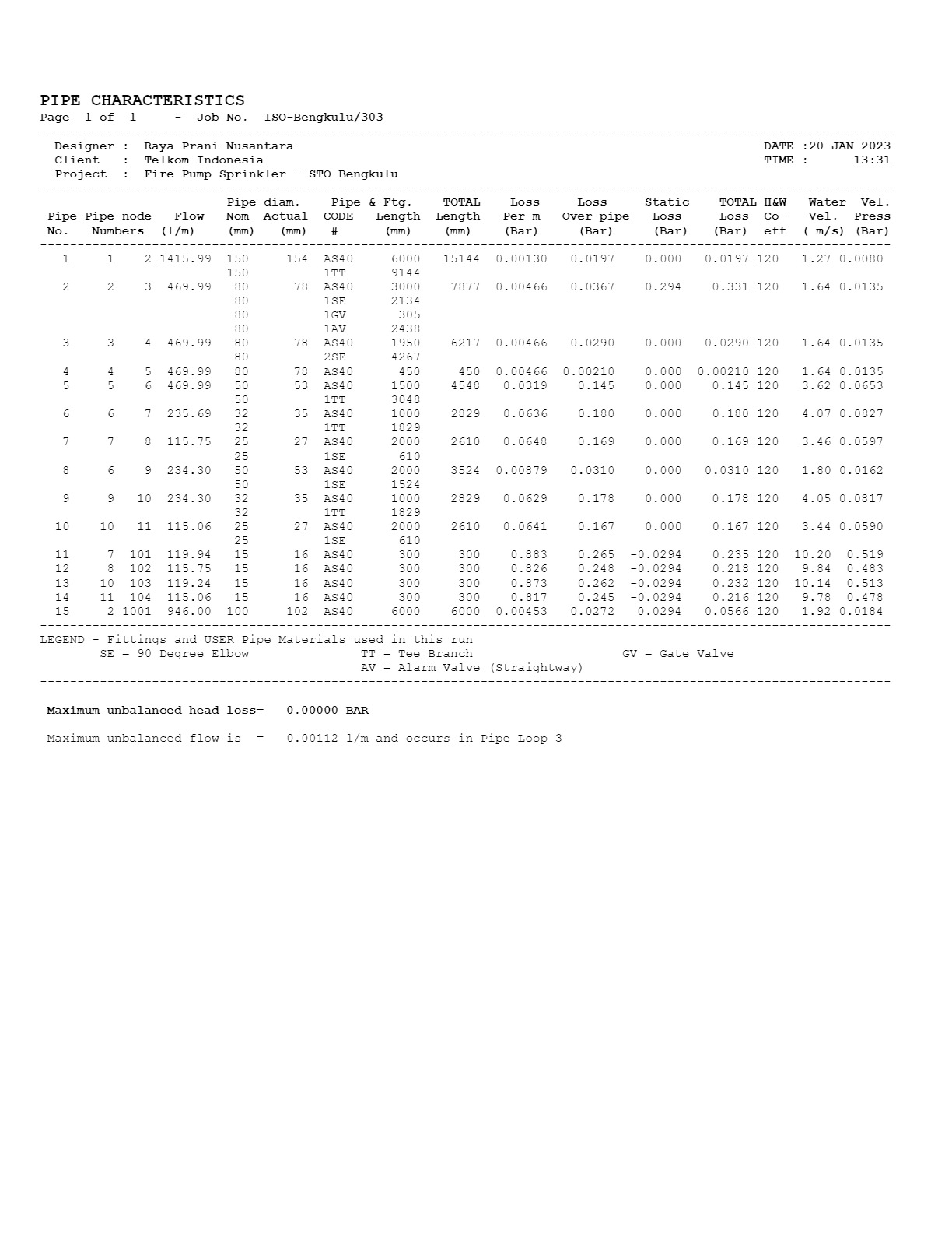 Hydarulic Calculation Pipe Flow : 1. Alarm Check Valve ( Sprinkler System ) 2. Deluge Valve ( Nozzle Water Spray, Nozzle Foam ) 3. Hydrant System